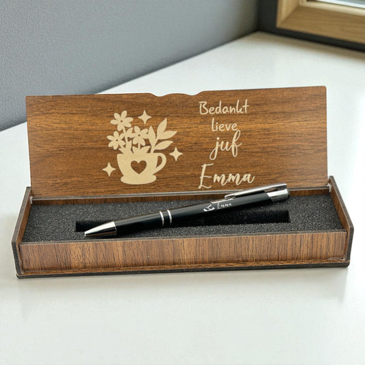 Personalized ballpoint pen with engraved wooden box for teacher or master
