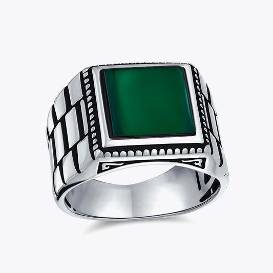 925 Silver Mens Ring With Green Agate Stone ORTBL173