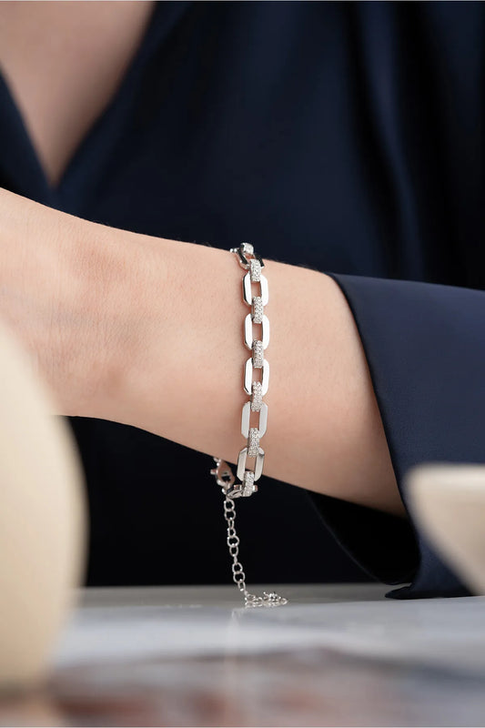 Silver Link Bracelet with Baguette Stones