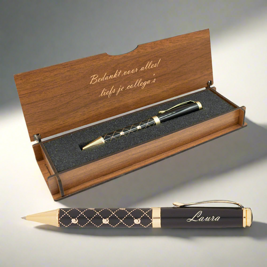 Personalized ballpoint pen - Writing set with engraved wooden box