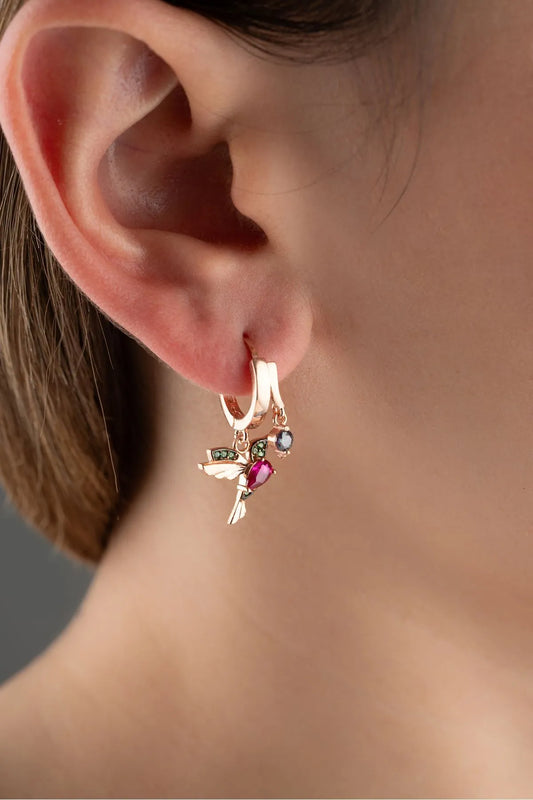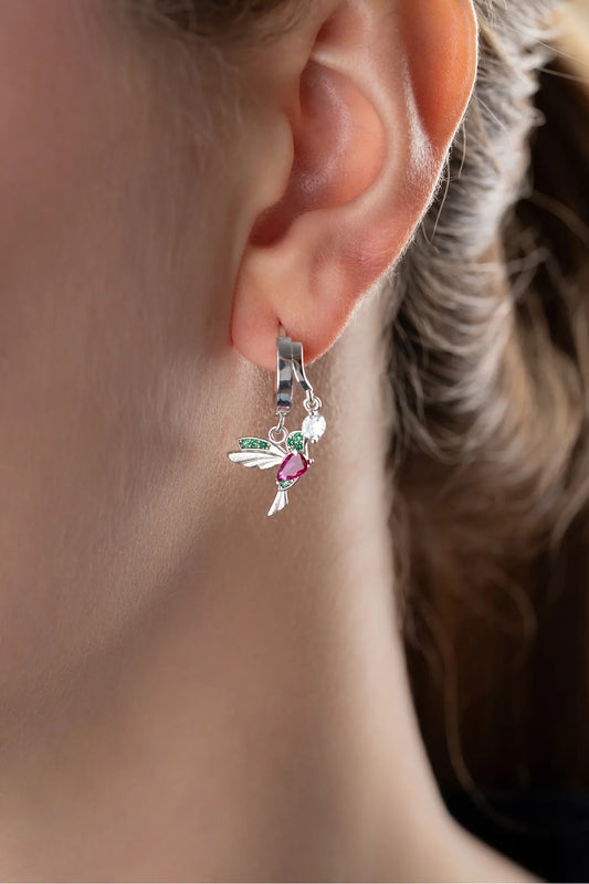 Hummingbird Charm - 925 Sterling Silver Earrings