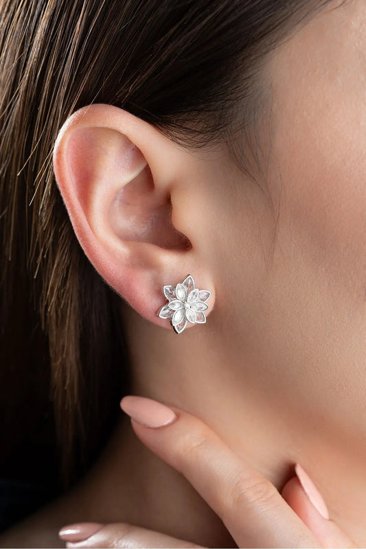 Lotus Stud earrings - 925 Silver & Zirconia