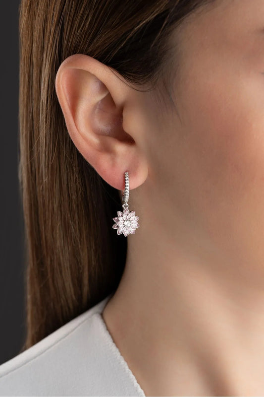 Pink Lotus earrings - 925 Silver & Zirconia