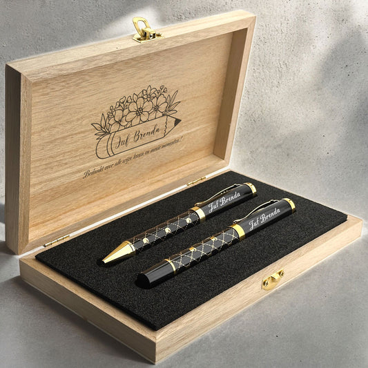 Personalized Pen Set - Writing Set With Engraved Wooden Box BLP014