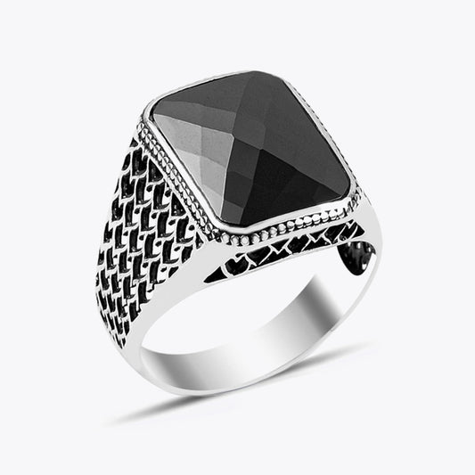 925 Silver Men's Ring With Black Stone LMR295