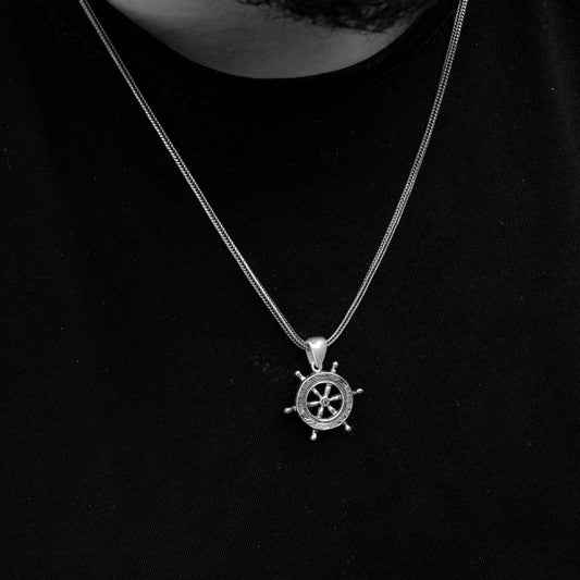 By LYDIAN Silver Necklace with ship's wheel pendant BLYDK083