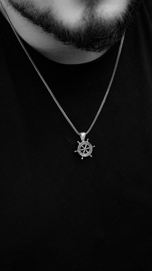 Men's necklace with compass pendant in Sterling silver BLYDK206