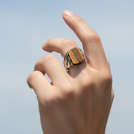 925 Silver Men's Ring With Tiger Eye Stone