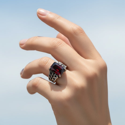 925 Silver Men's Ring With Red Stone
