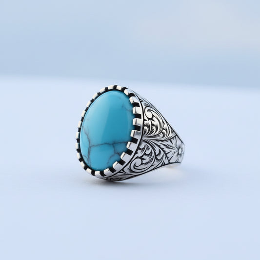 925 Sterling silver men's ring with turquoise stone