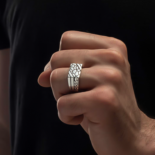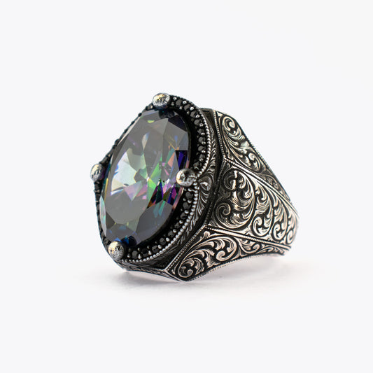 Silver Men's Ring with Oval Turquoise Stone – Handmade Design