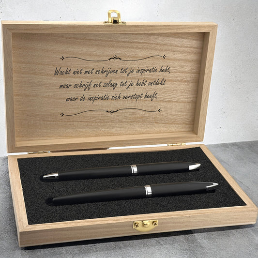 Personalized ballpoint pen - Writing set with engraved wooden box