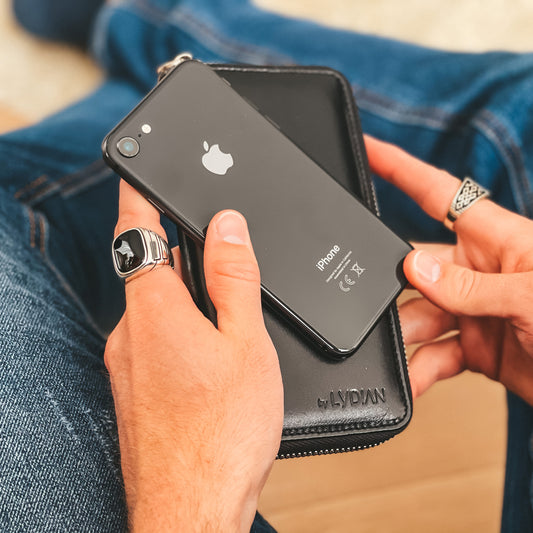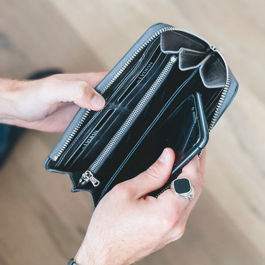 Black Leather Smartphone Wallet with 16 pockets BLW3016-S