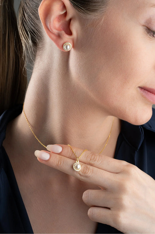 LunaPearl 925 – Pearl Necklace & Earrings Set