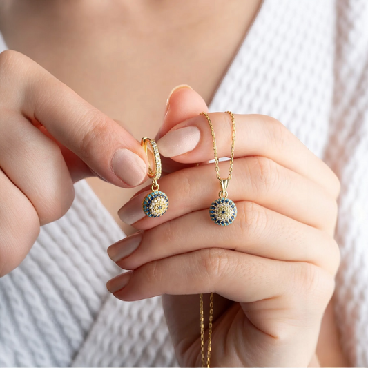 Evil Eye Necklace & Earrings Set – 925 Sterling Silver