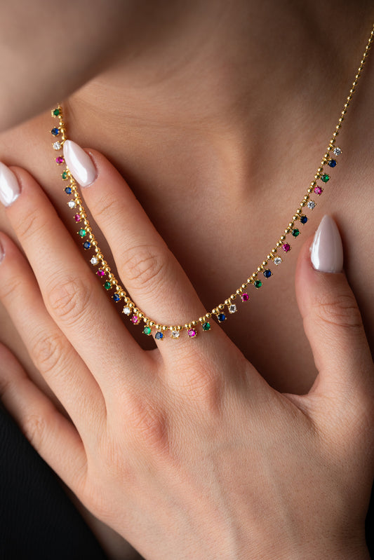 Serenay Necklace - with colored stones - 925 Sterling Silver