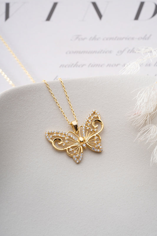Zirconia Flower Necklace - 925 Silver Gold Plated