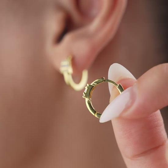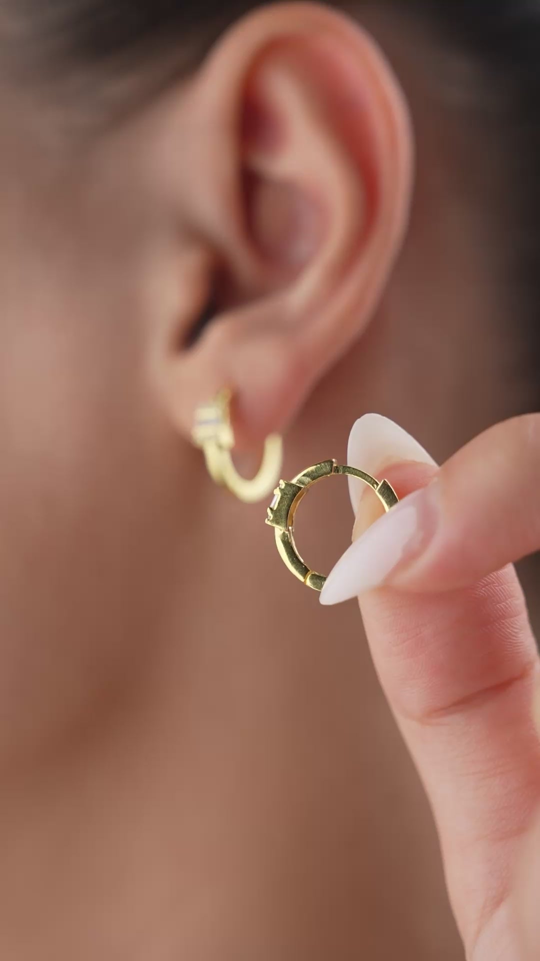 Stijlvolle hoepeloorbellen van 925 zilver met baguette geslepen stenen en glanzende afwerking.