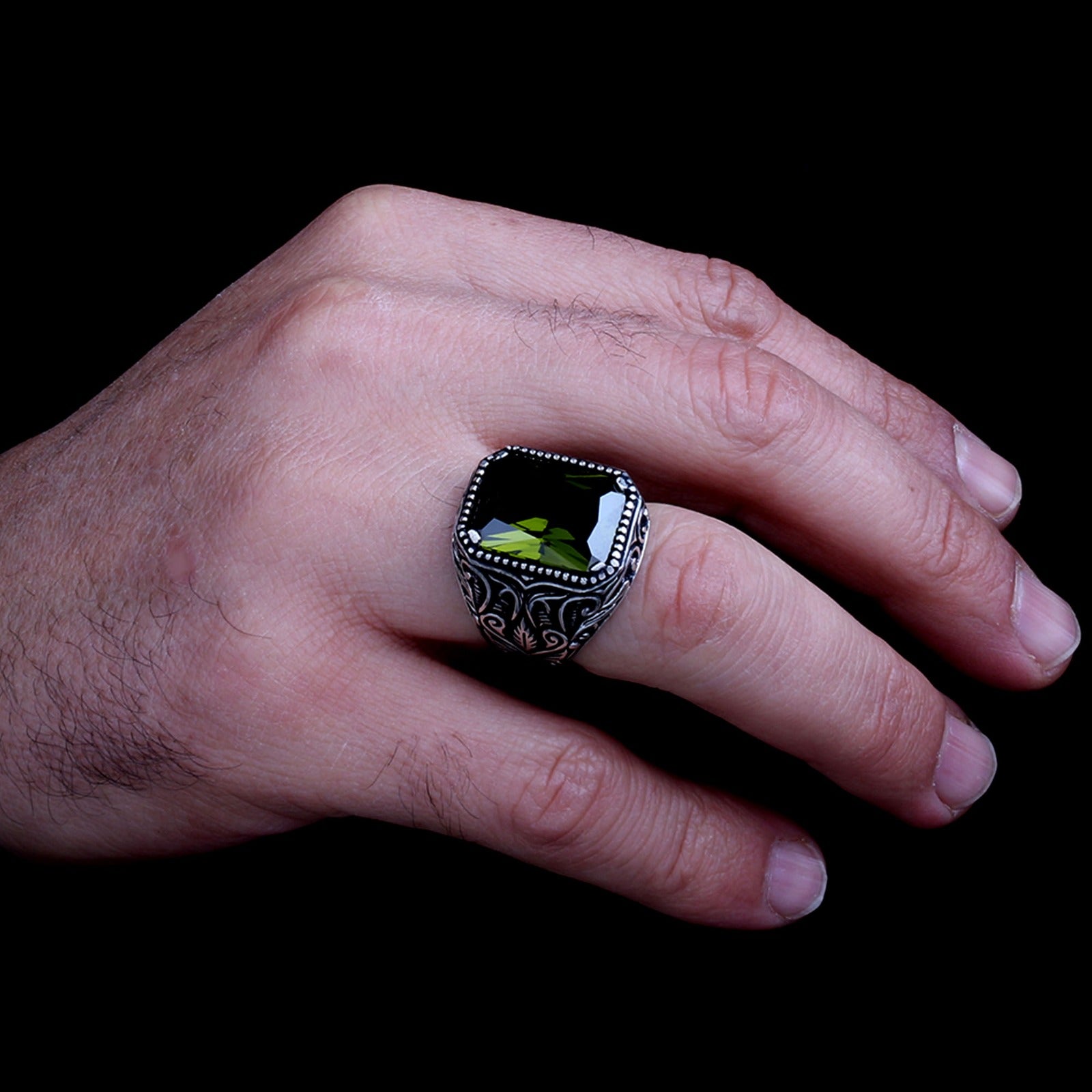 925 Sterling Silver Men's Ring with Khaki Zircon Stone