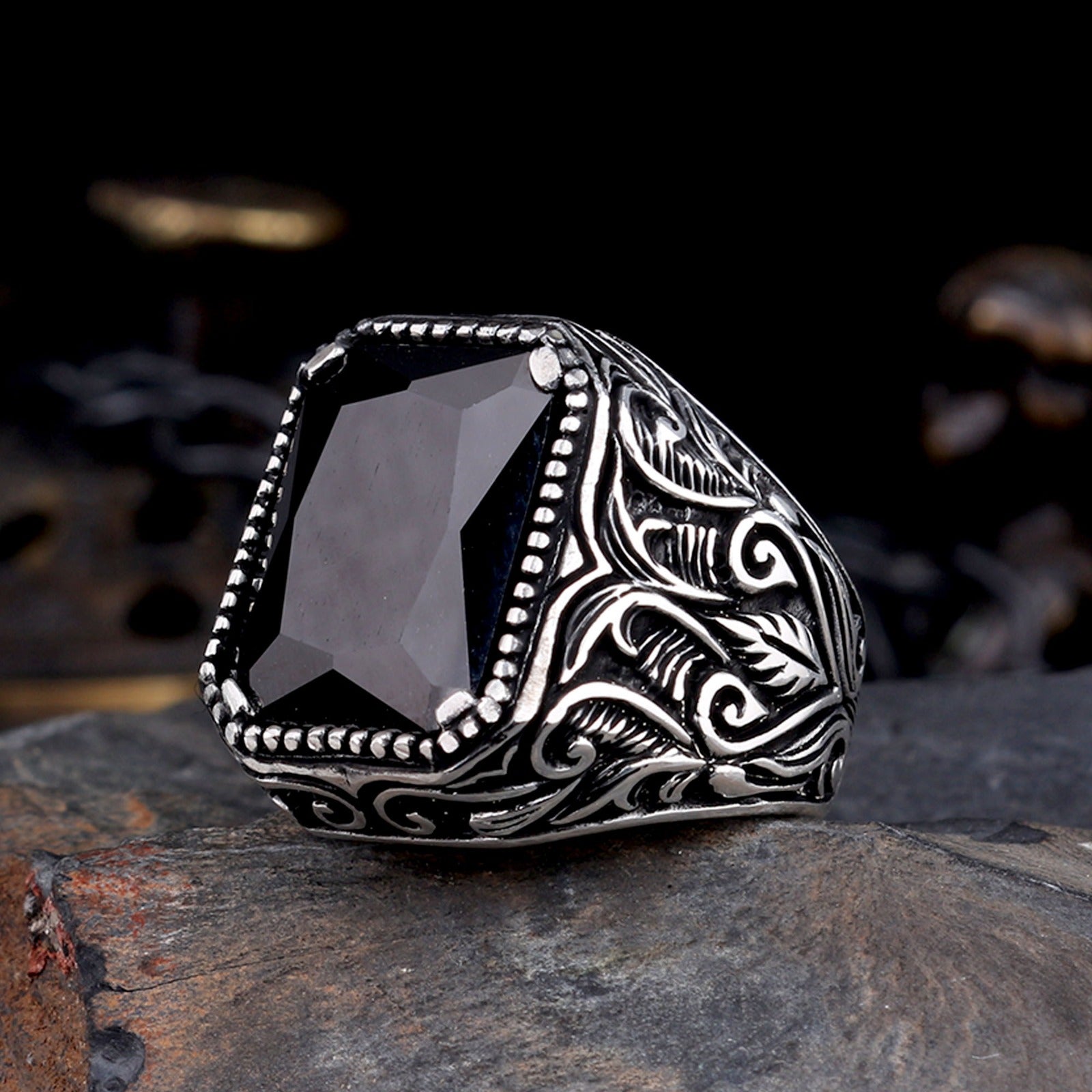 925 Sterling Silver Men's Ring with Black Zircon Stone