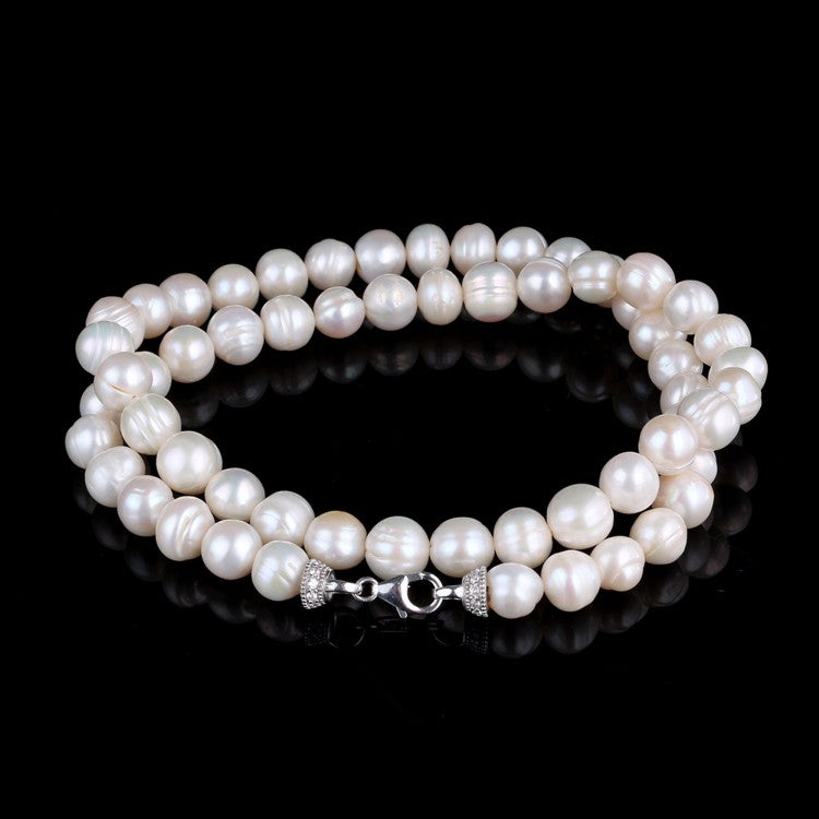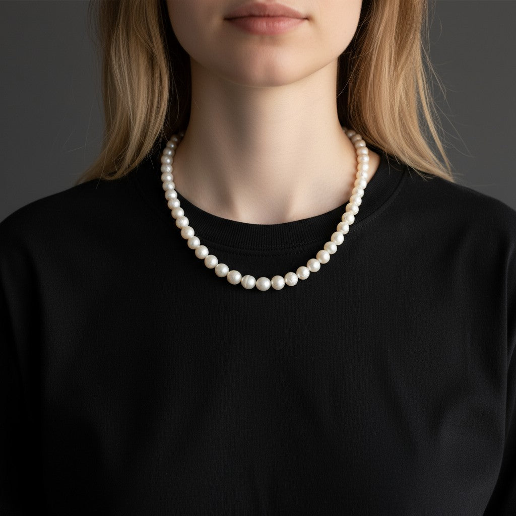 Sierlijke halsketting met echte cultuurparels en 925 zilveren clip‑sluiting – stijlvol en elegant.