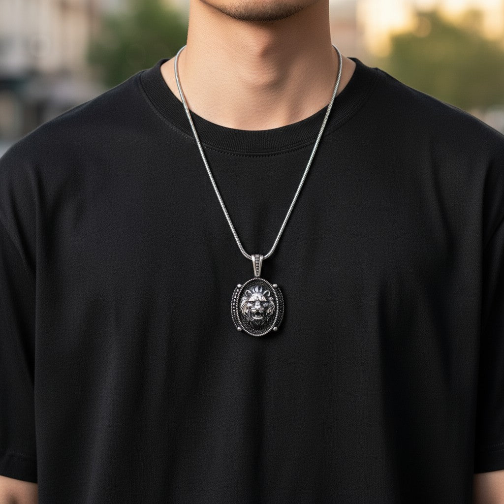 Stoere ketting met leeuwensymbool – staat voor kracht en leiderschap.