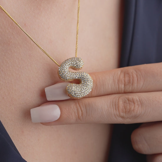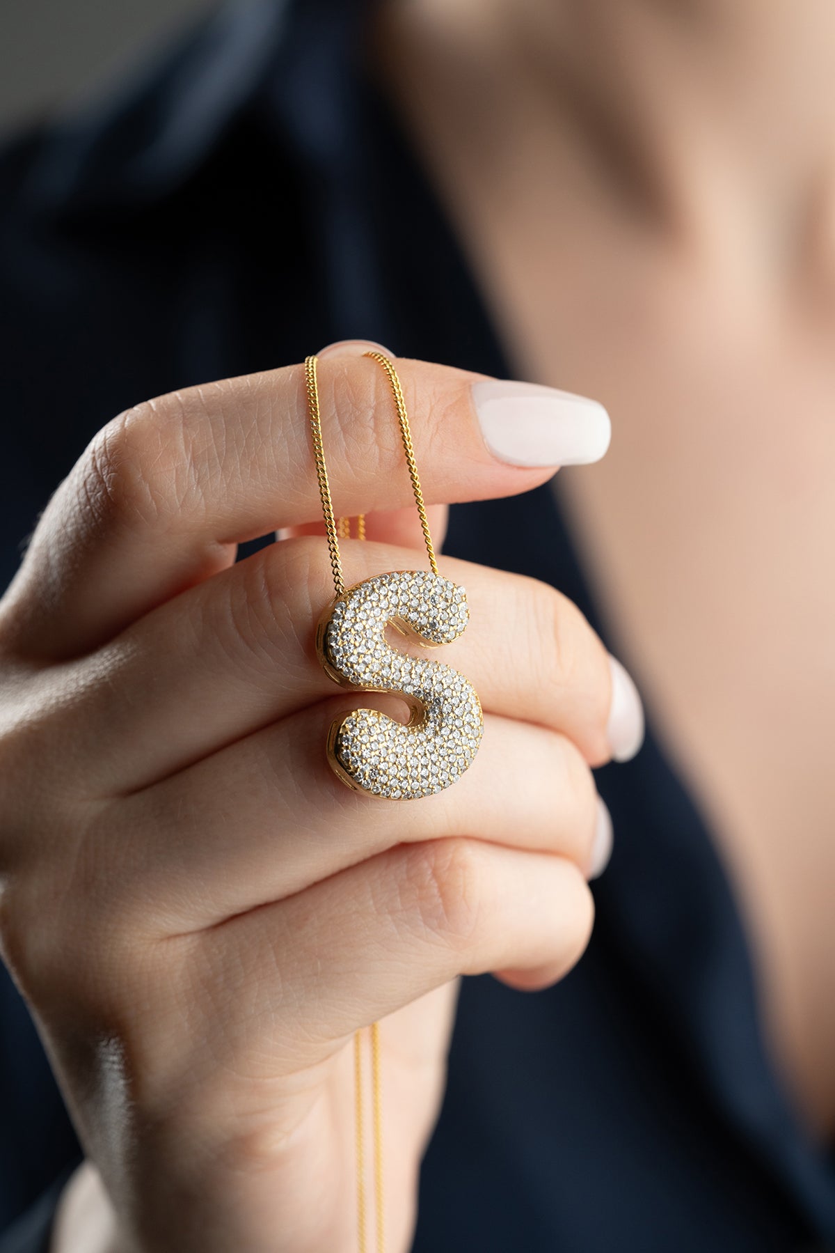 Balloon Letter Necklace - 925 Silver - With Zirconia Stones