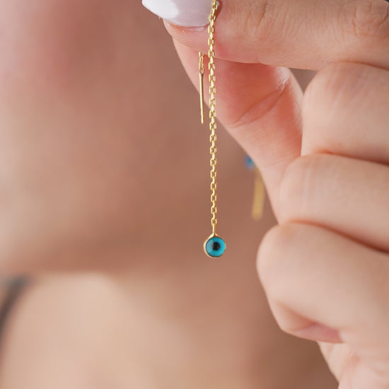 Blue Aura earrings combine the protective power of the traditional "evil eye" with modern elegance. The delicate gold chain and the enamel blue bead create a subtle and meaningful piece, perfect for everyday wear.