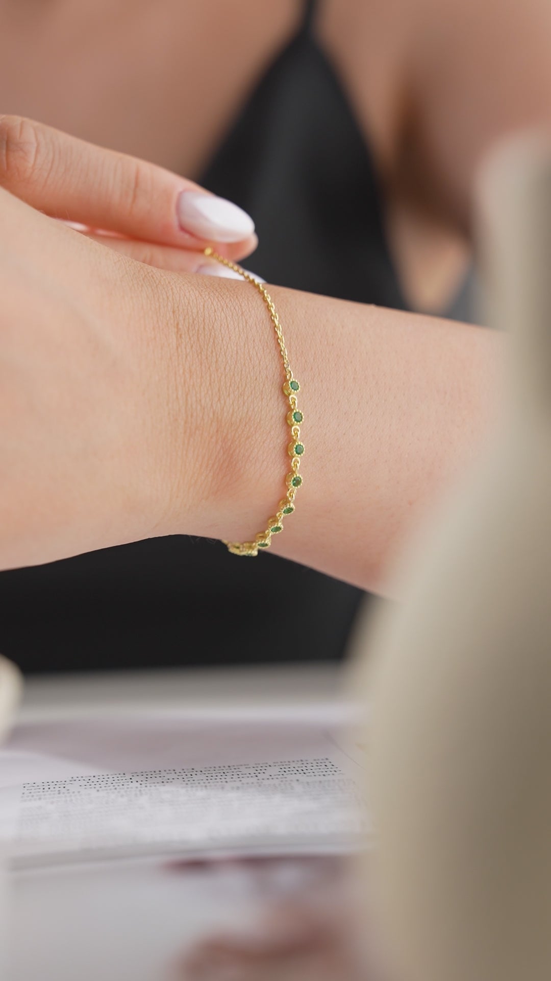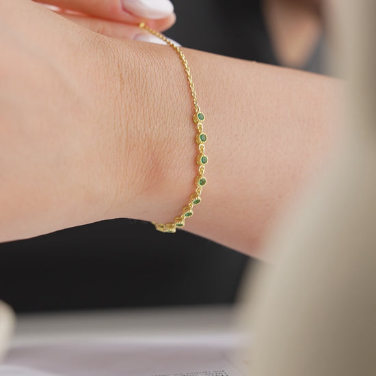 This refined bracelet with emerald stones is the perfect accessory for any occasion. The gold-plated chain exudes elegance, while the lightweight design ensures everyday comfort.