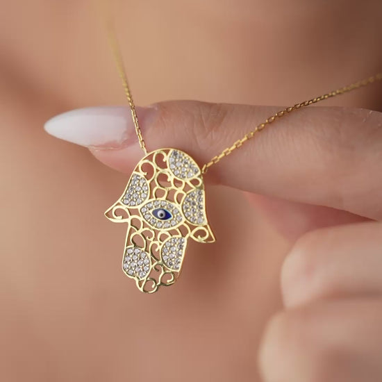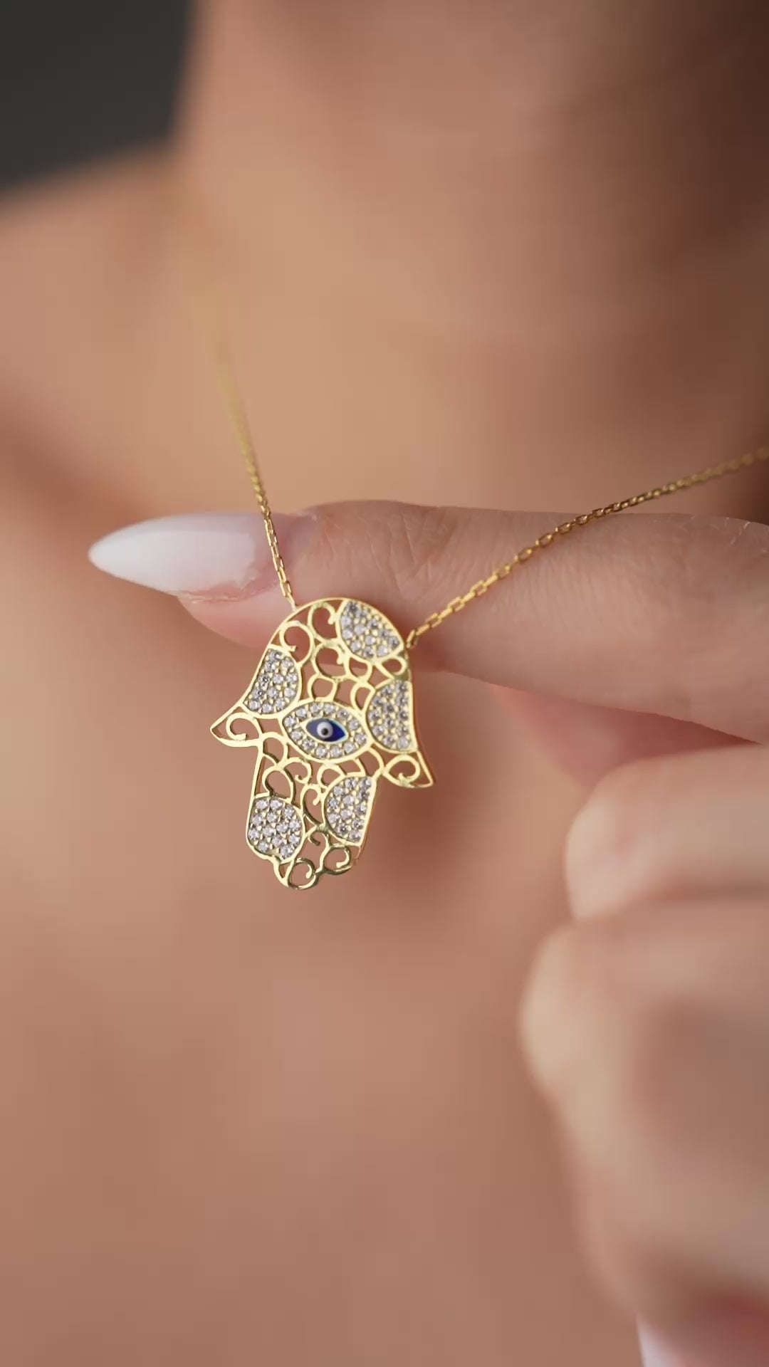 Hamsa Hand Necklace with Eye - 925 Silver Gold Plated