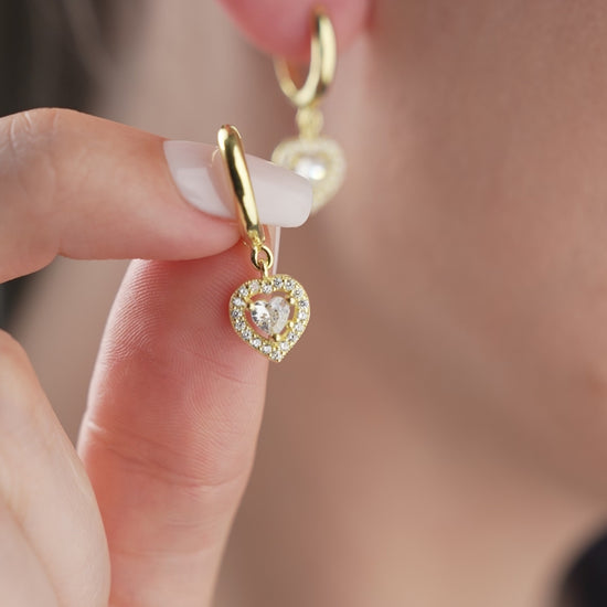 Heart Earrings - Heart -shaped pendant in gold or silver