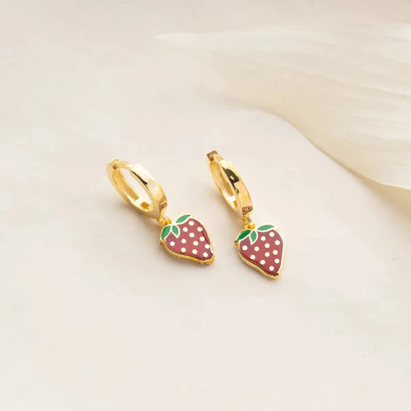 Deze vrolijke kinderoorbellen met een aardbeienfiguur zijn gemaakt van 925 sterling zilver en verguld met goud. De kleurrijke emaille details zorgen voor een speels effect, ideaal voor kleine oren. Hypoallergeen en comfortabel!