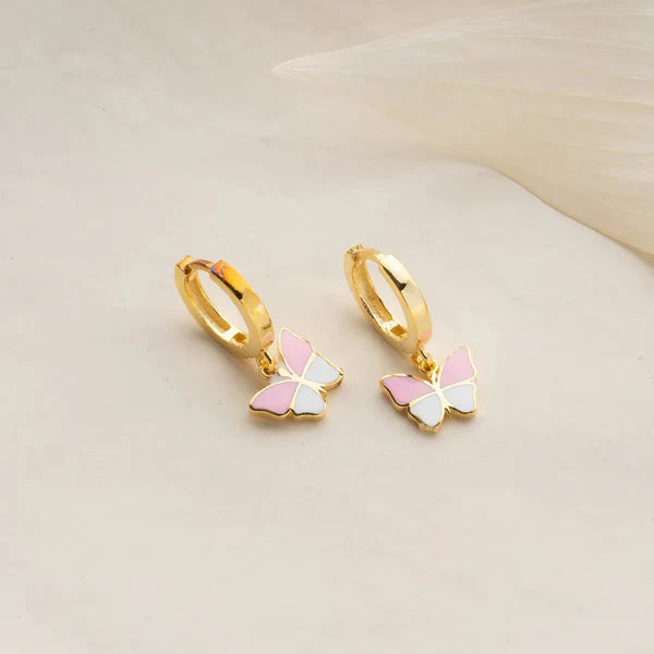 Deze lieve kinderoorbellen met roze-witte vlindervorm zijn gemaakt van 925 sterling zilver en verguld met goud. De kleurrijke emaille afwerking zorgt voor een speelse en vrolijke uitstraling. Hypoallergeen en veilig voor kinderoren.