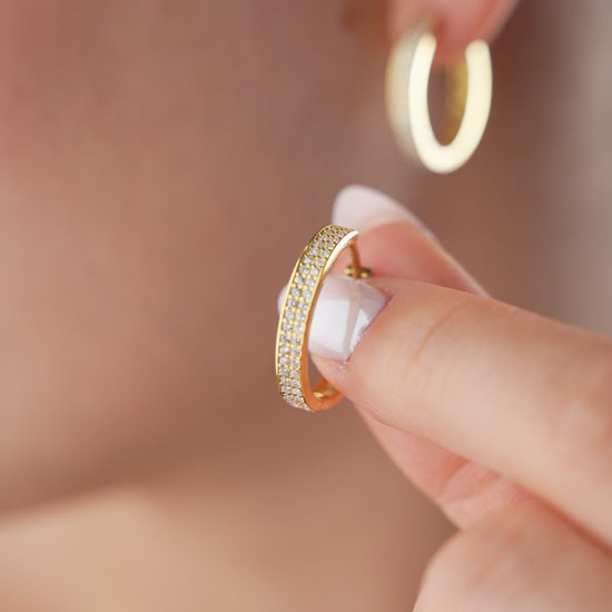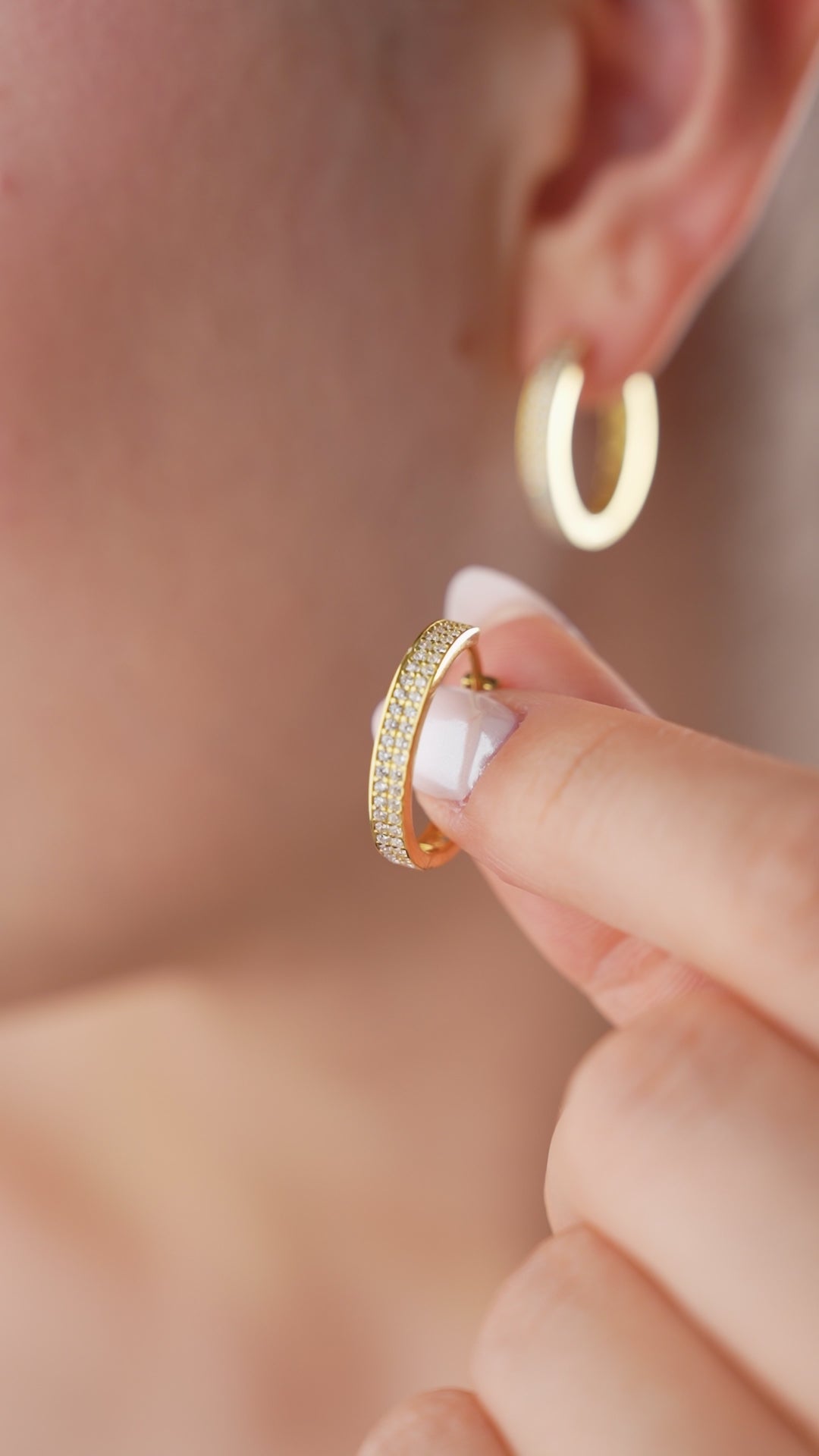 The LunaShine 925 mini hoop earrings combine simplicity with luxury thanks to their double row of zirconia and gold-plated finish. Perfect for a subtle yet chic look!
