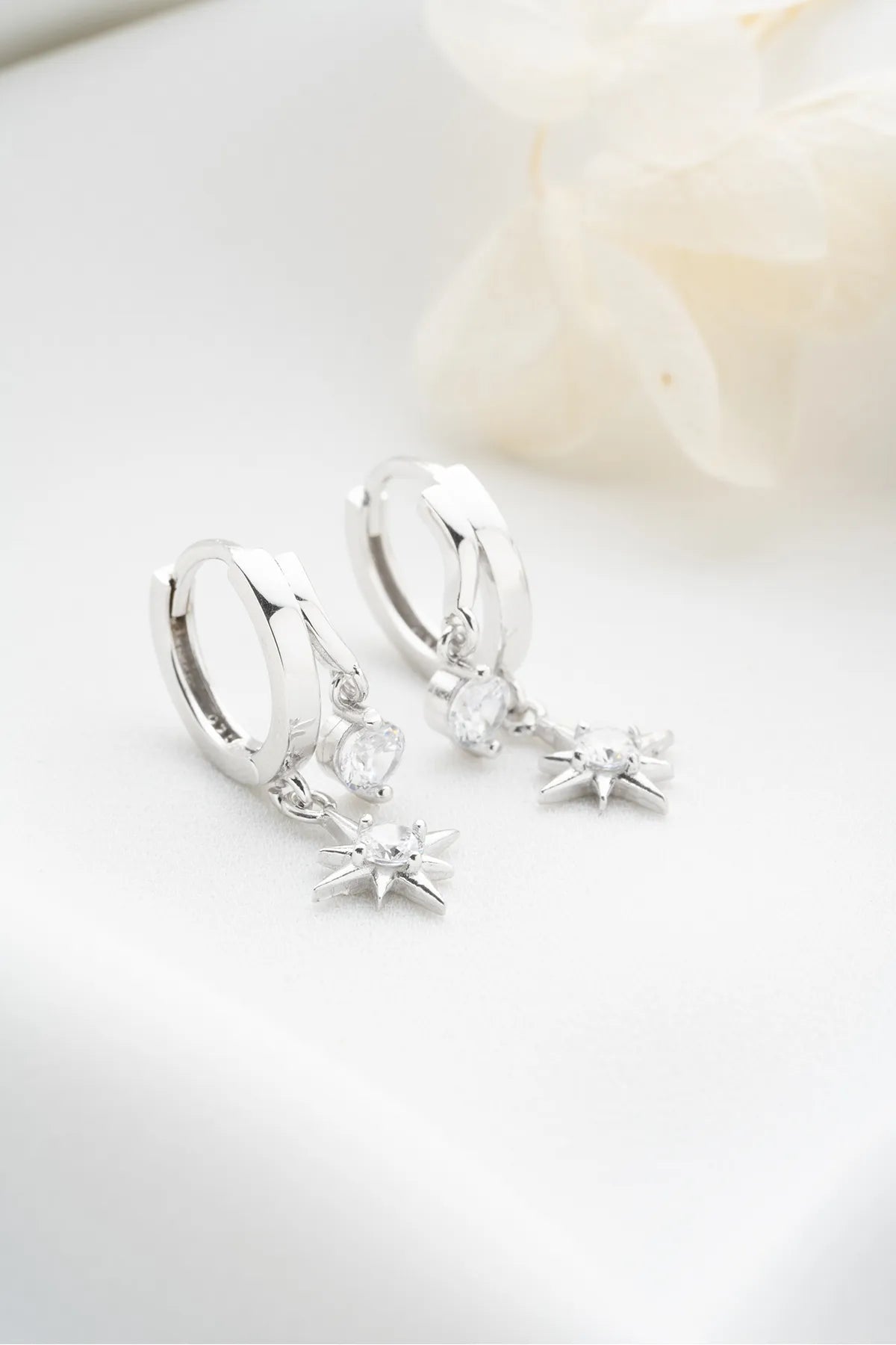 Elegant earrings with sparkling zirconia and a delicate north star – a timeless symbol of direction and hope in 925 sterling silver.