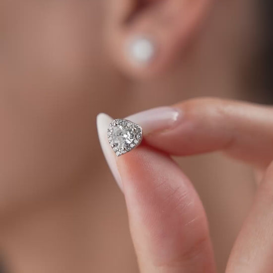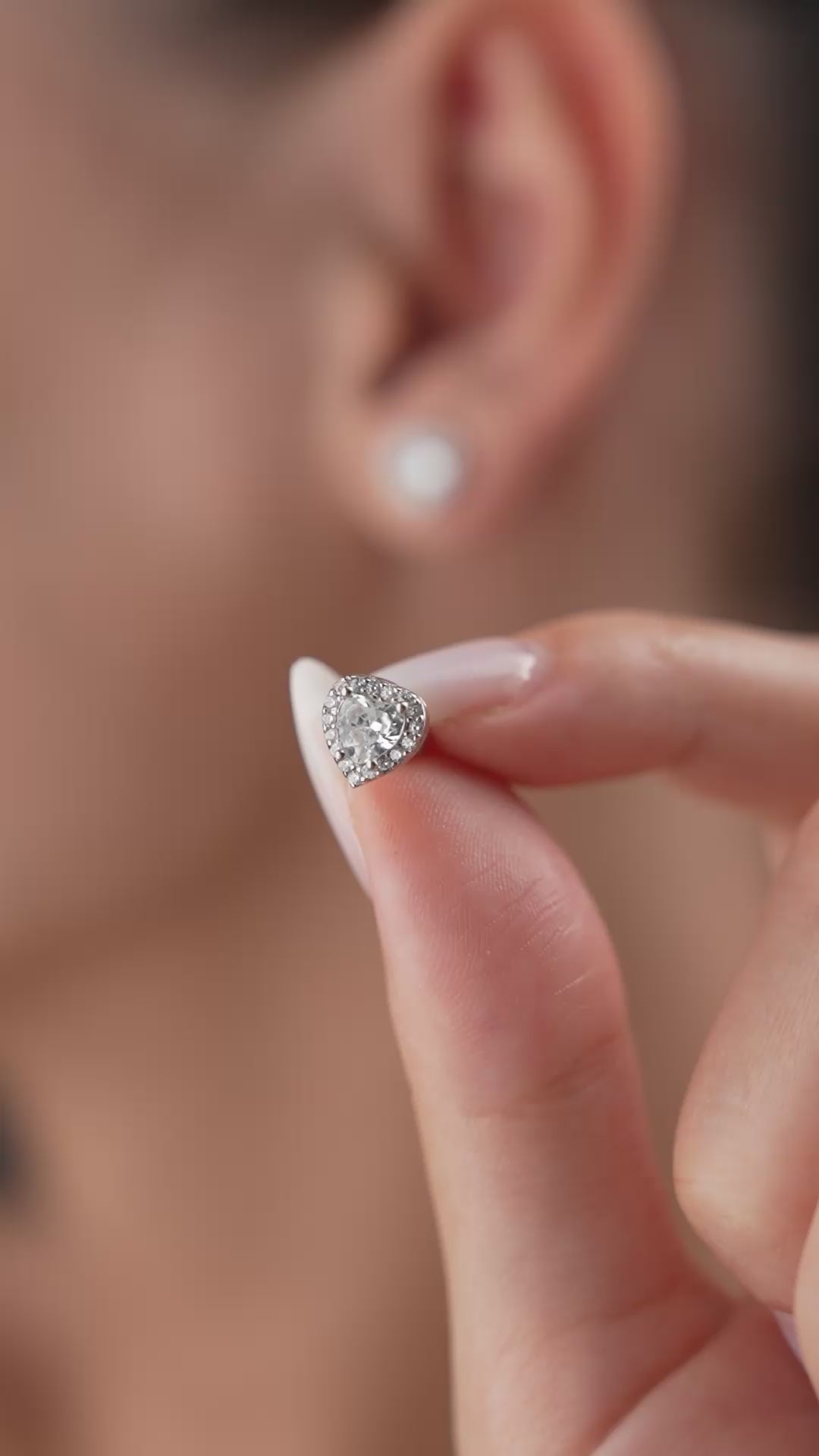 Radiant heart-shaped stud earrings with central stone and sparkling edge.