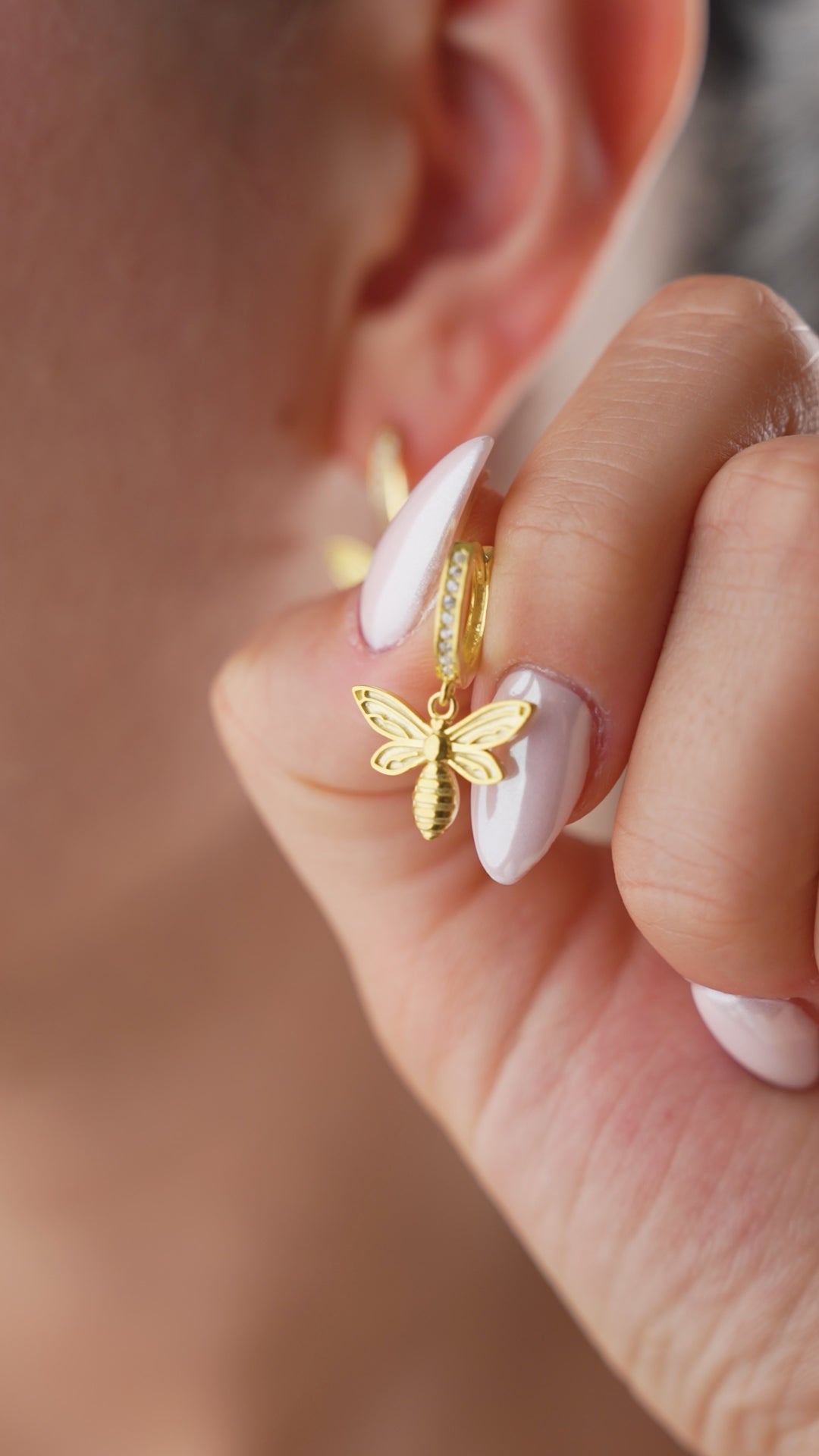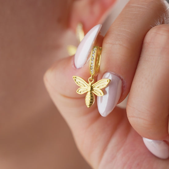 The QueenBee earrings combine symbolism and elegance. Featuring a beautiful bee pendant, a stunning gold-tone finish, and delicate zirconia, they make a stylish statement for any occasion.