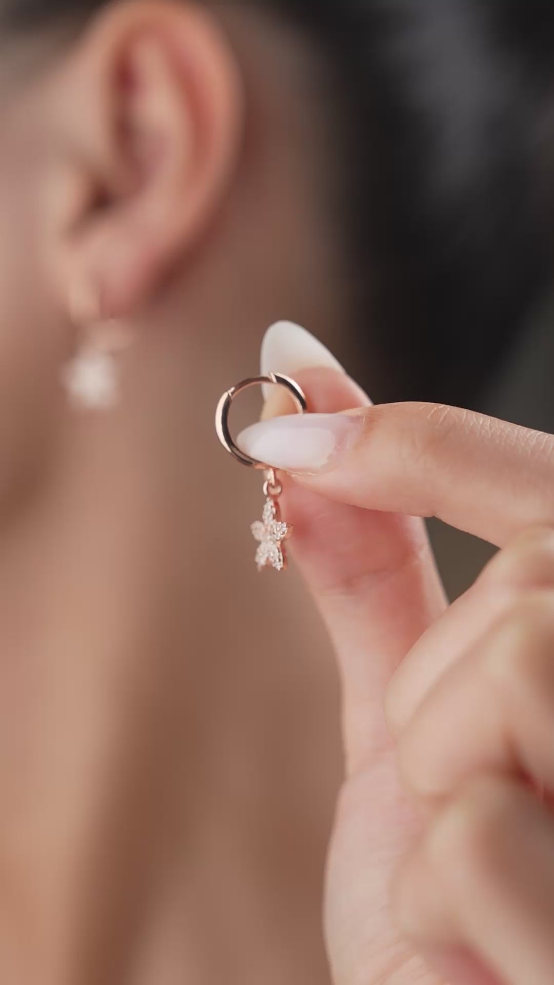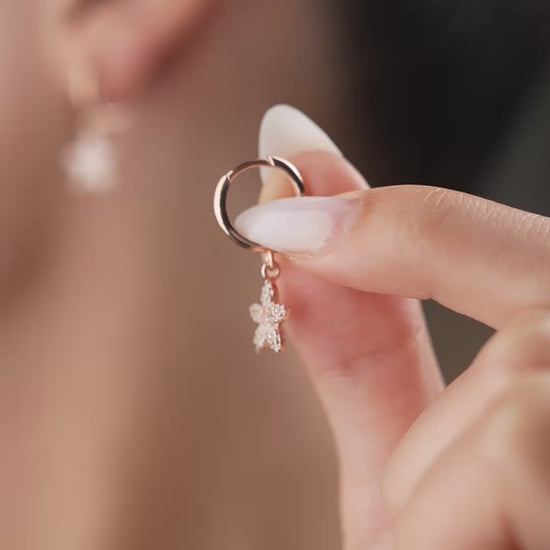 Rose gold-plated earrings with sparkling flowers studded with stones.
